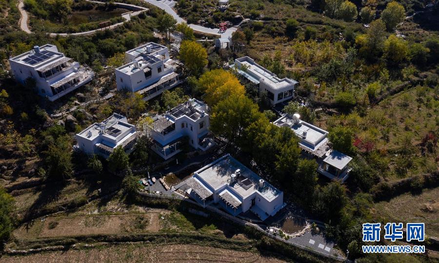 10月29日,四川省鄉(xiāng)城縣的定曲河峽谷的青德鄉(xiāng),民宿“皈院”錯(cuò)落有致,保留白藏房傳統(tǒng)民居特色(無(wú)人機(jī)拍攝)。新華社記者江宏景攝