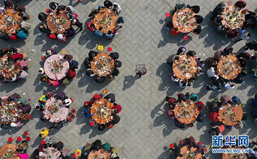 11月2日,南京仙林街道仙林新村社區(qū)居民參加千家宴(無(wú)人機(jī)拍攝)。  新華社記者 季春鵬 攝