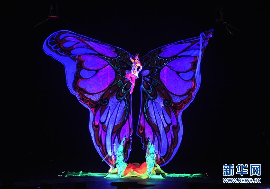 11月3日,來自俄羅斯的演員在表演《“蝴蝶”——夜光空中飛人》。 新華社記者 牟宇 攝