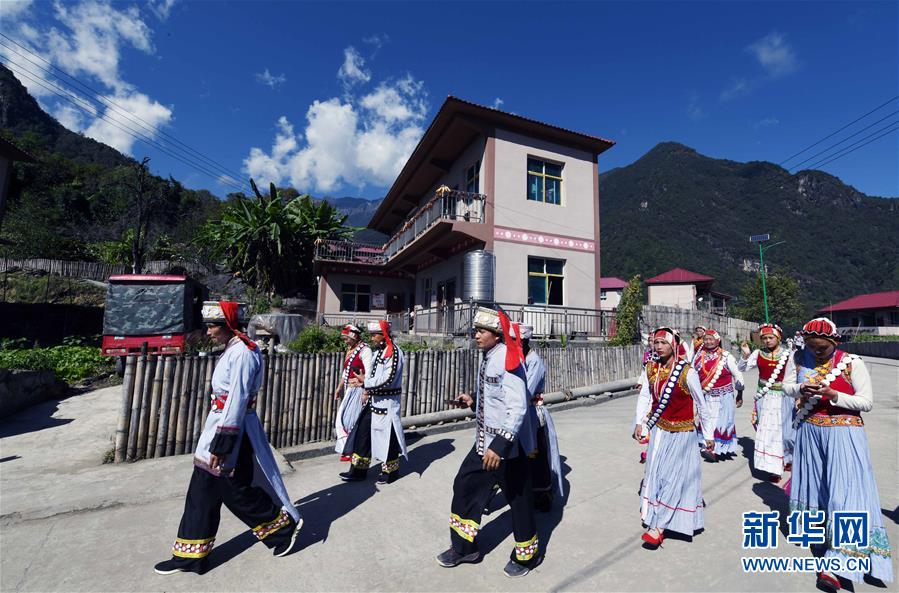 11月2日,云南福貢縣鹿馬登鄉(xiāng)干布村的傈僳族群眾行走在村里的水泥硬化路上。