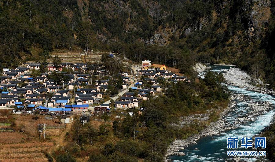 獨(dú)龍江鄉(xiāng)孔當(dāng)村的獨(dú)龍族新居(2016年11月23日攝)。新華社記者藺以光攝