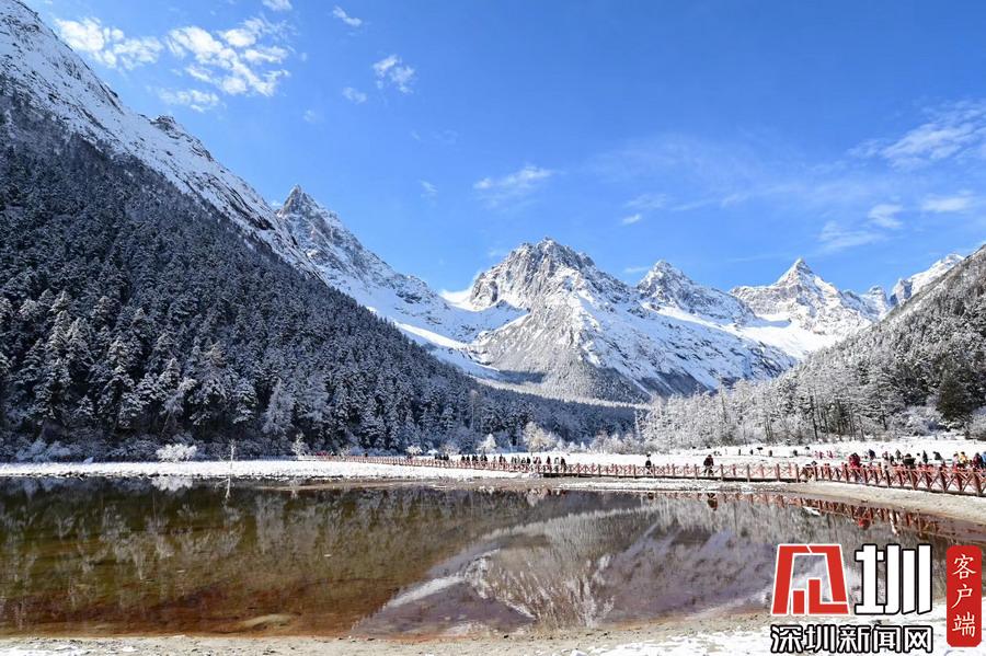 這是個(gè)五彩斑斕的世界,濃綠的樹,深紅的葉,青青的湖,湛藍(lán)的天,純白的雪;這是個(gè)多姿多彩世界,險(xiǎn)峻奇峰,一道冰川,人間寺廟。向立攝
