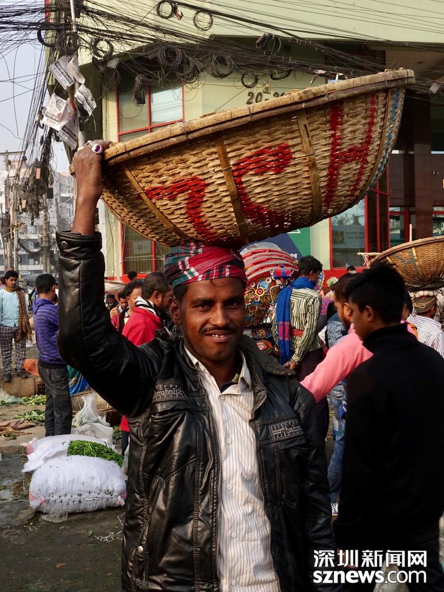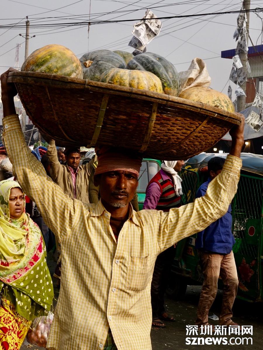 深圳新聞網(wǎng)2019年1月8日訊在孟加拉,無論城市,還是鄉(xiāng)下,人們頭頂重物的情景,確實是無處不在的。李仁奇攝