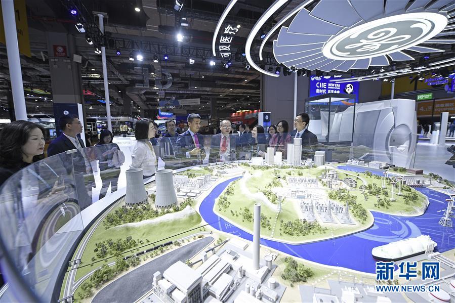 11月5日,觀眾在美國通用電氣展位參觀。新華社記者王鵬攝