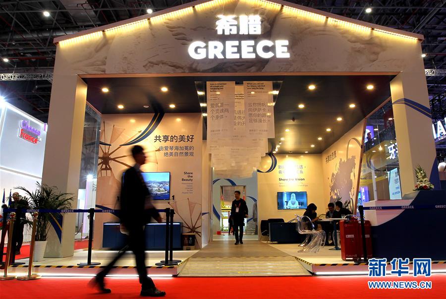 11月5日,參觀者走過希臘國家館。新華社記者陳飛攝