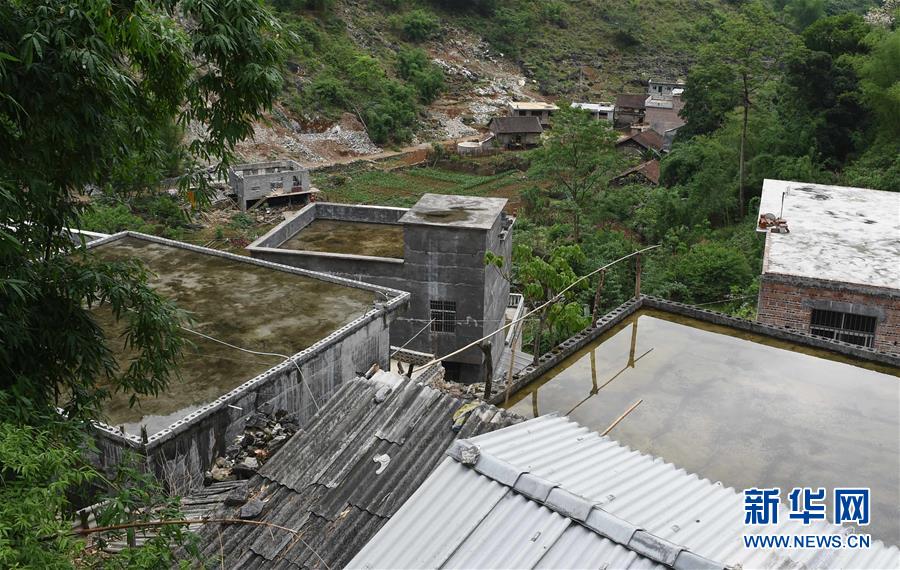 在廣西大化瑤族自治縣板升鄉(xiāng)弄勇村弄朝屯,房頂上的積水曾經是村民的飲用水(2015年5月4日攝)。如今,弄朝屯幾乎家家戶戶都修建了家庭水柜。新華社記者黃孝邦攝