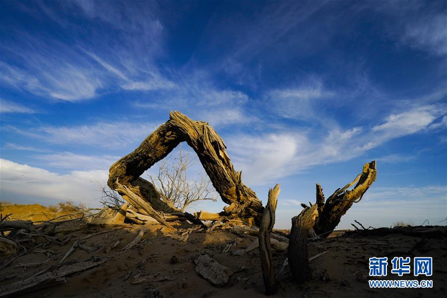 這是在克里雅河沿岸拍攝的沙漠胡楊景觀(11月15日攝)。 新華社記者 沈伯韓 攝