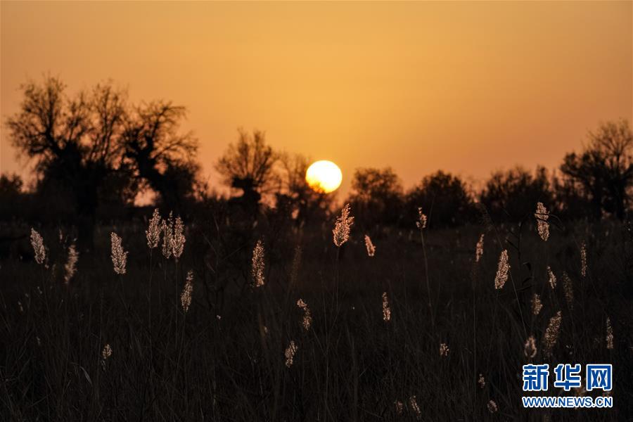 這是在克里雅河沿岸拍攝的夕陽下的蘆葦(11月10日拍攝)。 新華社記者 沈伯韓 攝