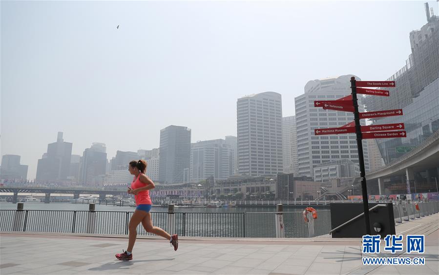 11月21日,在濃煙籠罩下的澳大利亞悉尼達(dá)令港,一名女子在港口步道上跑步。澳大利亞東部近期林火肆虐,悉尼所在的新南威爾士州自進(jìn)入今年林火季以來(lái),過火面積超過100萬(wàn)公頃。林火造成悉尼濃煙圍城,市民生活受到影響。新華社記者白雪飛攝