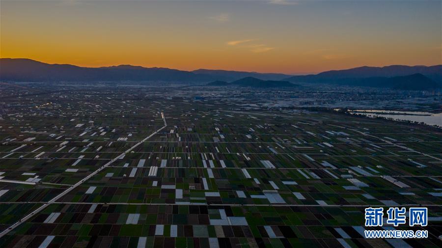 這是云南省玉溪市通??h的田園風(fēng)光(11月23日無人機拍攝)。初冬時節(jié),云南省玉溪市通??h風(fēng)景秀麗,山巒、湖水與農(nóng)田組成了一幅美麗的田園詩畫卷。新華社記者胡超攝