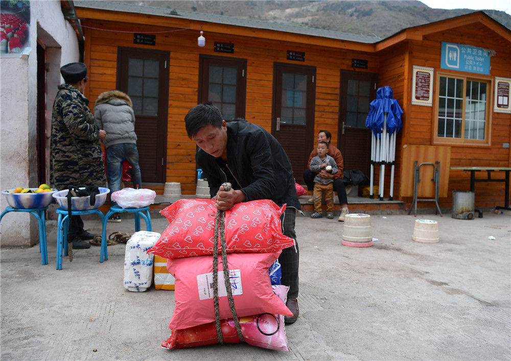 實拍懸崖村的“雙十一” 背著快遞包裹上天梯