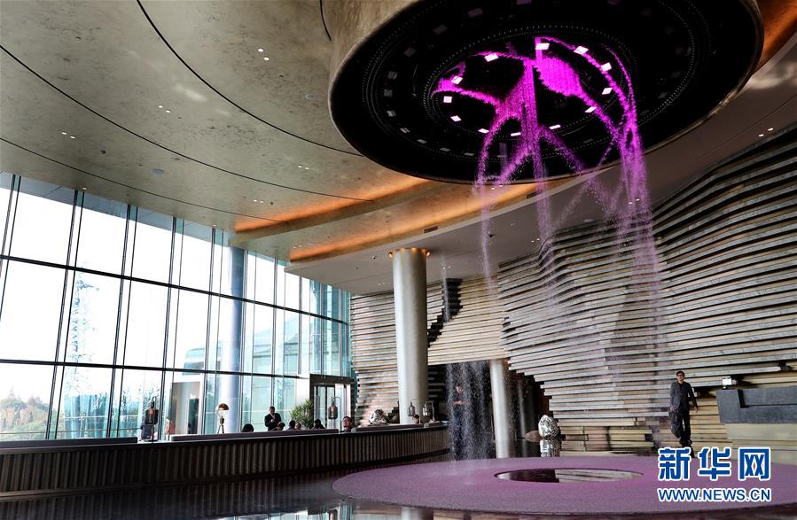 這是世茂洲際酒店大堂內(nèi)的水幕裝置(11月13日攝)。新華社記者方喆攝