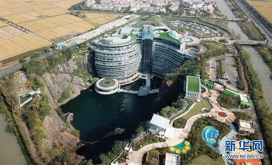 這是位于上海松江佘山腳下的世茂洲際酒店(11月13日無(wú)人機(jī)拍攝)。位于上海松江的世茂洲際酒店11月15日正式開(kāi)門(mén)營(yíng)業(yè)。這家在一個(gè)廢棄采石礦坑內(nèi)建成的酒店成為上海又一新景。新華社記者方喆攝