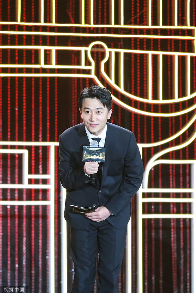 黃軒登臺(tái)發(fā)言,鞠躬盡顯禮節(jié)。