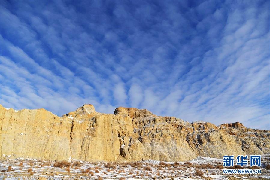 11月26日拍攝的新疆福??h烏倫古湖海上魔鬼城景區(qū)美景。福??h烏倫古湖海上魔鬼城景區(qū)位于新疆阿勒泰地區(qū)福??h吉力湖東岸,有著獨特的雅丹地貌和水域景觀,是當?shù)刂穆糜蝿俚?。新華社記者沙達提攝