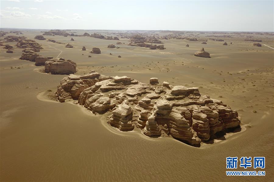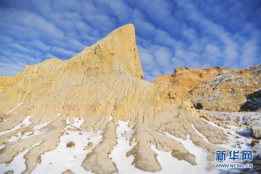 11月26日拍攝的新疆福??h烏倫古湖海上魔鬼城景區(qū)美景。福海縣烏倫古湖海上魔鬼城景區(qū)位于新疆阿勒泰地區(qū)福??h吉力湖東岸,有著獨特的雅丹地貌和水域景觀,是當?shù)刂穆糜蝿俚?。新華社記者沙達提攝