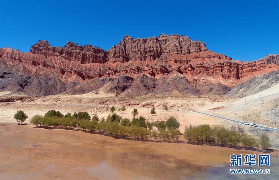 這是位于貴德縣尕讓鄉(xiāng)松巴村附近的丹霞地貌(4月16日無人機拍攝)。新華社記者趙玉和攝