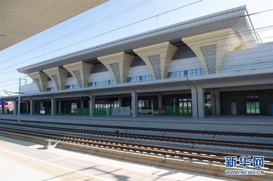 建設(shè)中的京張高鐵下花園北站(5月29日無人機(jī)拍攝)。京張高鐵下花園北站是連接京張高鐵和崇禮鐵路的樞紐站,位于下花園城區(qū)北側(cè)偏東,站場(chǎng)規(guī)模設(shè)2站臺(tái)5線。目前,下花園北站主體建設(shè)已完工,正在進(jìn)行內(nèi)外部裝修。新華社記者邢廣利攝