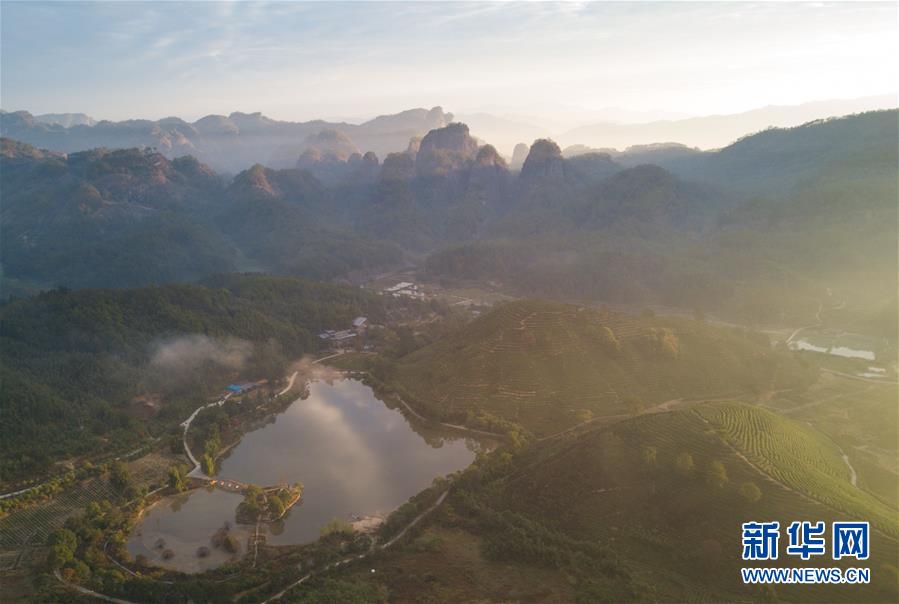 這是武夷山日出后的田園風(fēng)光(11月17日無人機(jī)拍攝)。新華社記者宋為偉攝