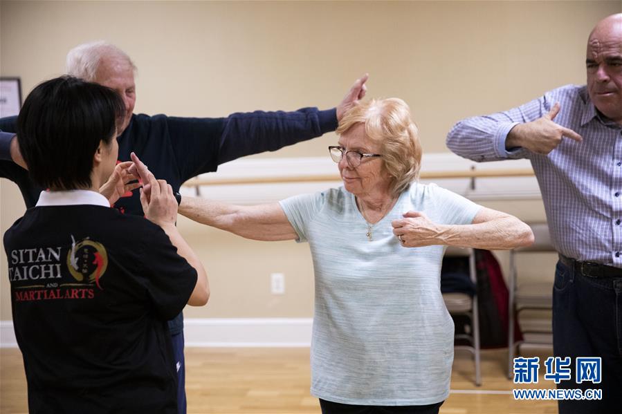 陳思坦的夫人林旭在位于美國紐約長島的一所社區(qū)老年活動中心指導老人練習太極(11月20日攝)。這里是陳思坦夫婦開設的一個公益教學項目。11月的紐約已進入初冬,位于美國紐約長島的思坦太極武術中心依然一片紅火景象,學員們從5歲的孩童到80多歲的老人,操練著太極拳、太極劍、長拳等武術招式。這里的主人陳思坦、林旭夫婦,也從早忙到晚,精心指導每一位學員的一招一式。6歲習武,22歲成為中國全國冠軍,26歲獲得首個世界冠軍……直到30歲退役,陳思坦在運動員生涯中曾獲得過32次國內外各類武術大賽冠軍。36歲那年,懷著以太極拳和中國武術為媒介向世界推廣中國文化的夢想,陳思坦到美國紐約尋找新的舞臺。經過十多年的艱苦打拼,陳思坦夫婦目前在紐約長島、法拉盛和曼哈頓都開設了長期的課程,思坦太極注冊在編的各個年齡段的學員近千人,有些“高徒”現在自己也開班授課,將太極推向更多地方。陳思坦夫婦現在思考更多的是如何將太極和武術推廣給更多的美國人,并讓他們理解其中蘊含的平衡、和諧的中國文化理念。他們創(chuàng)辦了紐約太極健身氣功活動日,在各類學校和社區(qū)開設太極或者武術課程,并利用美國的亞太裔文化月和多元文化節(jié)舉行武術和太極表演和體驗課程,讓更多美國人親眼看到、親身體會中國武術的魅力。從2011年起,他們還參與創(chuàng)辦了紐約太極大賽,如今已舉行九屆,吸引了美國、加拿大和中國國內的隊伍參賽,影響力逐漸擴大。新華社記者王迎攝