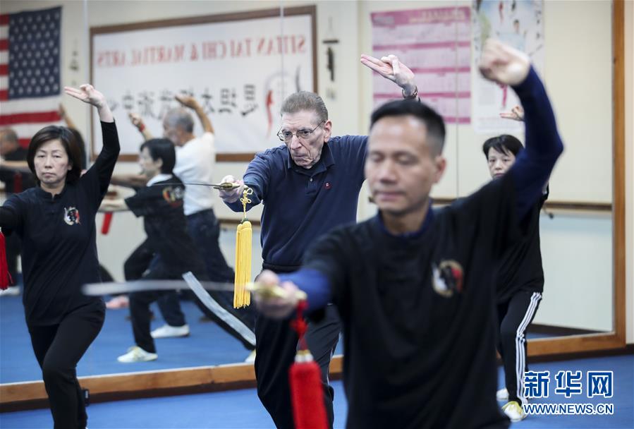 陳思坦在位于美國紐約長島的思坦太極武術中心指導學員練習太極劍(11月20日攝)。11月的紐約已進入初冬,位于美國紐約長島的思坦太極武術中心依然一片紅火景象,學員們從5歲的孩童到80多歲的老人,操練著太極拳、太極劍、長拳等武術招式。這里的主人陳思坦、林旭夫婦,也從早忙到晚,精心指導每一位學員的一招一式。6歲習武,22歲成為中國全國冠軍,26歲獲得首個世界冠軍……直到30歲退役,陳思坦在運動員生涯中曾獲得過32次國內外各類武術大賽冠軍。36歲那年,懷著以太極拳和中國武術為媒介向世界推廣中國文化的夢想,陳思坦到美國紐約尋找新的舞臺。經過十多年的艱苦打拼,陳思坦夫婦目前在紐約長島、法拉盛和曼哈頓都開設了長期的課程,思坦太極注冊在編的各個年齡段的學員近千人,有些“高徒”現在自己也開班授課,將太極推向更多地方。陳思坦夫婦現在思考更多的是如何將太極和武術推廣給更多的美國人,并讓他們理解其中蘊含的平衡、和諧的中國文化理念。他們創(chuàng)辦了紐約太極健身氣功活動日,在各類學校和社區(qū)開設太極或者武術課程,并利用美國的亞太裔文化月和多元文化節(jié)舉行武術和太極表演和體驗課程,讓更多美國人親眼看到、親身體會中國武術的魅力。從2011年起,他們還參與創(chuàng)辦了紐約太極大賽,如今已舉行九屆,吸引了美國、加拿大和中國國內的隊伍參賽,影響力逐漸擴大。新華社記者王迎攝