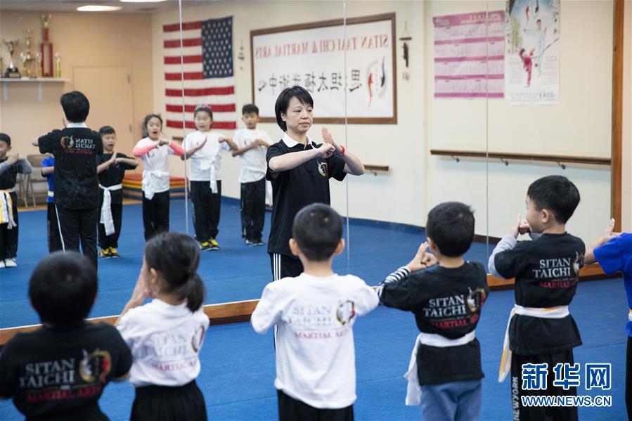陳思坦的夫人林旭在位于美國紐約長島的思坦太極武術中心指導小學員練習武術(11月20日攝)。11月的紐約已進入初冬,位于美國紐約長島的思坦太極武術中心依然一片紅火景象,學員們從5歲的孩童到80多歲的老人,操練著太極拳、太極劍、長拳等武術招式。這里的主人陳思坦、林旭夫婦,也從早忙到晚,精心指導每一位學員的一招一式。6歲習武,22歲成為中國全國冠軍,26歲獲得首個世界冠軍……直到30歲退役,陳思坦在運動員生涯中曾獲得過32次國內外各類武術大賽冠軍。36歲那年,懷著以太極拳和中國武術為媒介向世界推廣中國文化的夢想,陳思坦到美國紐約尋找新的舞臺。經過十多年的艱苦打拼,陳思坦夫婦目前在紐約長島、法拉盛和曼哈頓都開設了長期的課程,思坦太極注冊在編的各個年齡段的學員近千人,有些“高徒”現在自己也開班授課,將太極推向更多地方。陳思坦夫婦現在思考更多的是如何將太極和武術推廣給更多的美國人,并讓他們理解其中蘊含的平衡、和諧的中國文化理念。他們創(chuàng)辦了紐約太極健身氣功活動日,在各類學校和社區(qū)開設太極或者武術課程,并利用美國的亞太裔文化月和多元文化節(jié)舉行武術和太極表演和體驗課程,讓更多美國人親眼看到、親身體會中國武術的魅力。從2011年起,他們還參與創(chuàng)辦了紐約太極大賽,如今已舉行九屆,吸引了美國、加拿大和中國國內的隊伍參賽,影響力逐漸擴大。新華社記者王迎攝