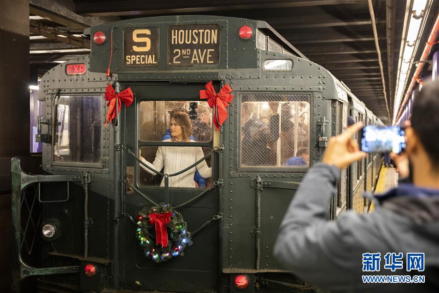 12月8日,在美國紐約,一名女士在“懷舊專列”里拍照。每年感恩節(jié)到新年之間的星期日,紐約地鐵都會用1932年至1977年間使用的老式列車在運營的線路上開行特別的“懷舊專列”,人們穿戴舊時服飾專程前來搭乘,體驗時光回溯的奇妙旅程。新華社記者王迎攝