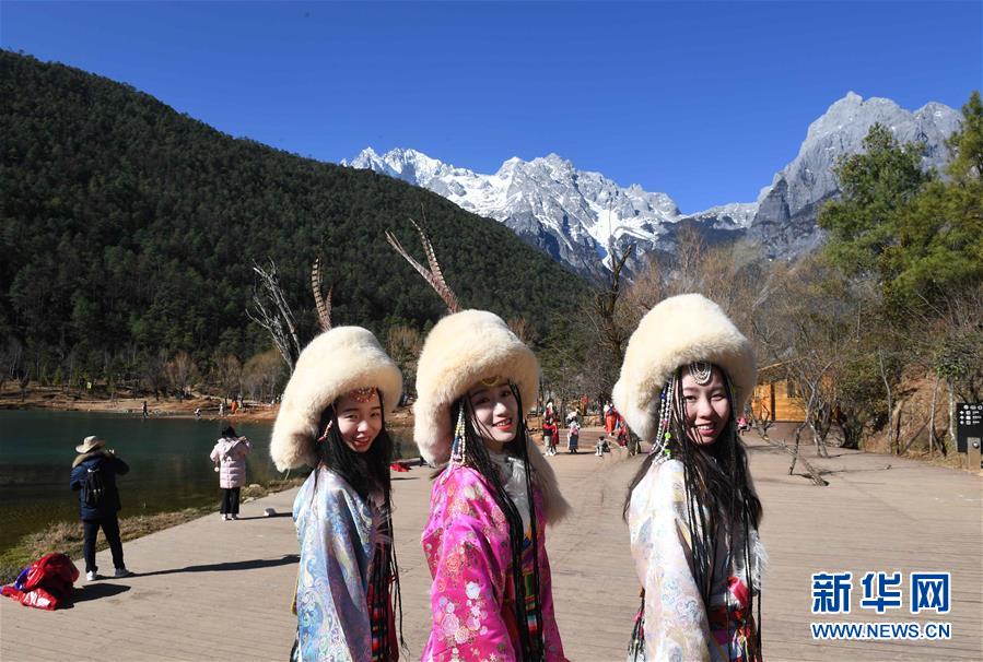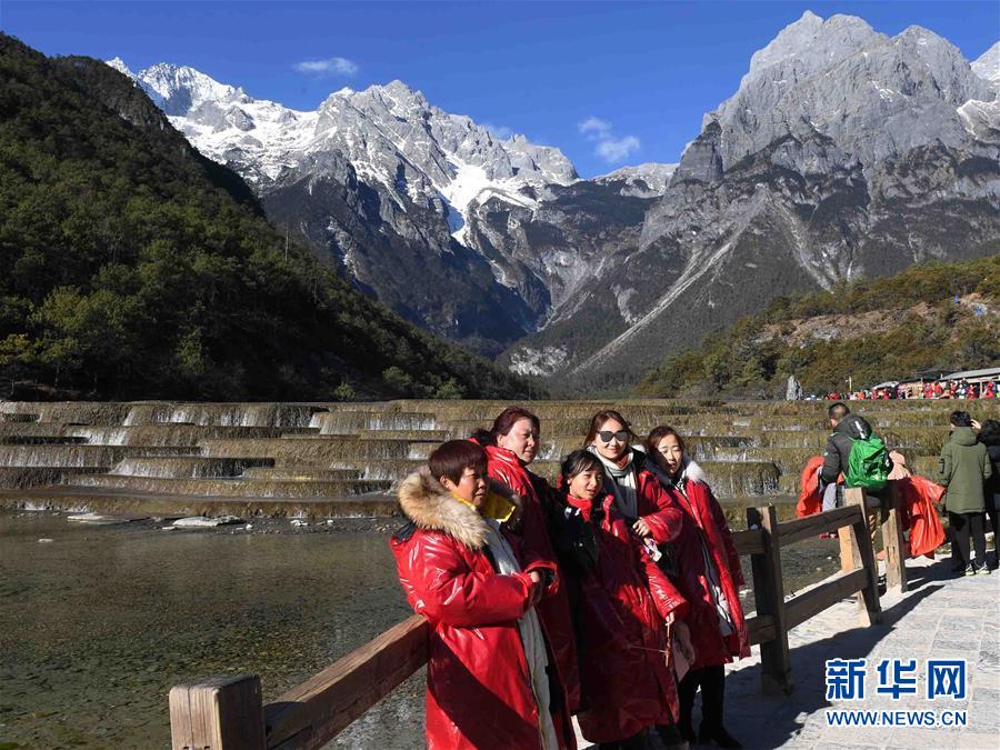 初冬的云南省麗江玉龍雪山景色秀美,吸引游客前來觀光。
