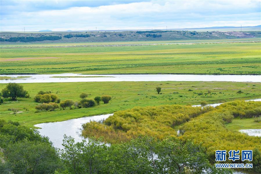 8月26日無人機(jī)拍攝的伊敏河。伊敏河流經(jīng)呼倫貝爾草原。新華社記者彭源攝