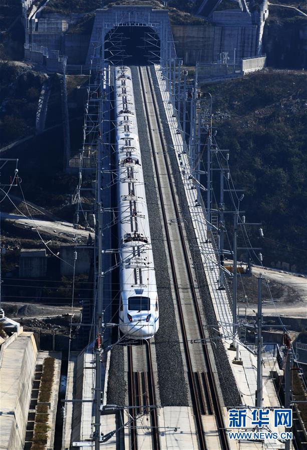 12月2日,一輛試驗列車駛過成貴高鐵鴨池河特大橋。當日,正在進行聯(lián)調(diào)聯(lián)試的成貴高鐵進入全線拉通空載模擬運行階段,試驗列車將在成都到貴陽區(qū)間內(nèi)全線路運行。線路全長650公里的成貴高鐵是我國“八縱八橫”高速鐵路網(wǎng)的重要組成部分,設(shè)計時速為250公里。新華社記者劉續(xù)攝