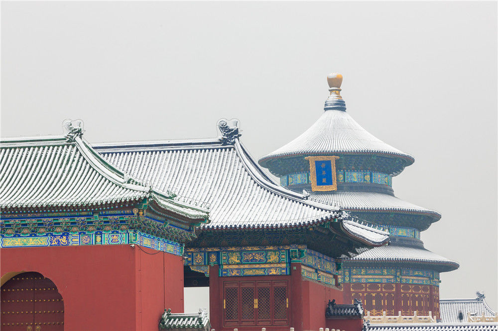 2019年11月30日,北京,初雪過(guò)后,天壇公園銀裝素裹,白雪古建相互映襯,景色迷人。劉高攀/視覺(jué)中國(guó)
