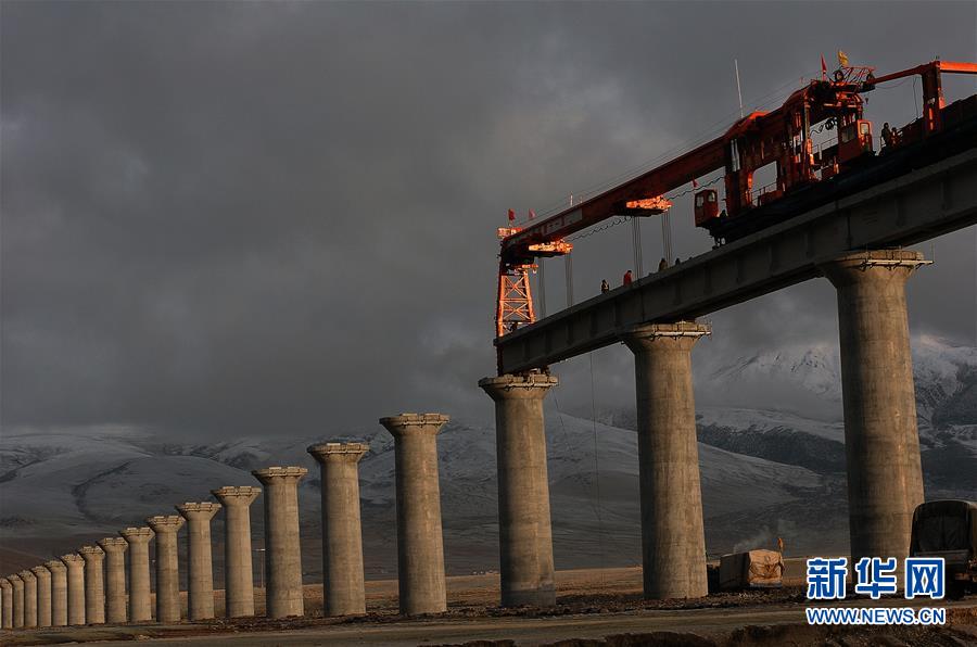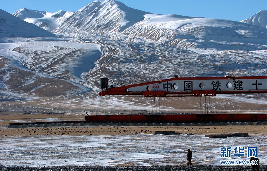 青藏鐵路在架橋施工中(2004年資料照片)。新華社記者覺果攝