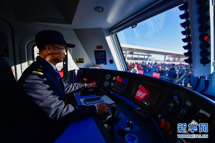 12月18日,在青海格爾木,中國鐵路青藏集團(tuán)有限公司西寧機務(wù)段列車司機季仁千扎西在開通儀式上準(zhǔn)備發(fā)車。當(dāng)日,隨著肅北至馬海區(qū)段通車,敦煌鐵路全線開通運營,中國西北地區(qū)形成首條環(huán)形鐵路網(wǎng)。新華社記者張龍攝