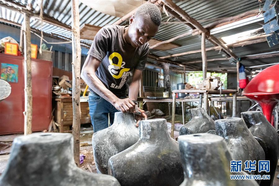 12月20日,在肯尼亞內(nèi)羅畢庫(kù)奧納藝術(shù)中心,一名藝術(shù)家制作裝置藝術(shù)作品。 新華社記者 王騰 攝