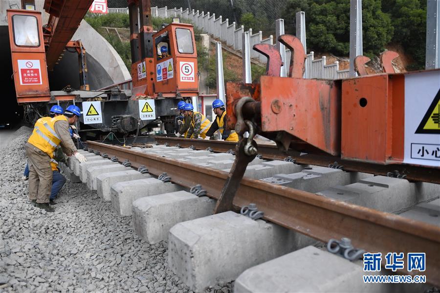 12月22日,中鐵二十四局工作人員在平潭海峽公鐵大橋鋪軌施工現(xiàn)場進行鋪軌作業(yè)。新華社記者林善傳攝