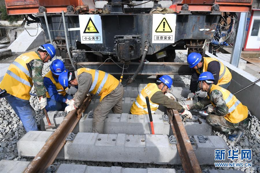 12月22日,中鐵二十四局工作人員在平潭海峽公鐵大橋鋪軌施工現(xiàn)場(chǎng)進(jìn)行鋪軌作業(yè)。新華社記者林善傳攝