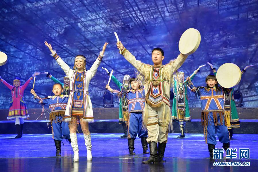 12月22日,演員在表演歌舞《敖魯古雅》。 當(dāng)日,冰雪之約——喜迎“十四冬”惠民文藝演出在呼倫貝爾大劇院舉行,為觀眾呈現(xiàn)一場(chǎng)“歌舞盛宴”。 新華社記者 徐欽 攝