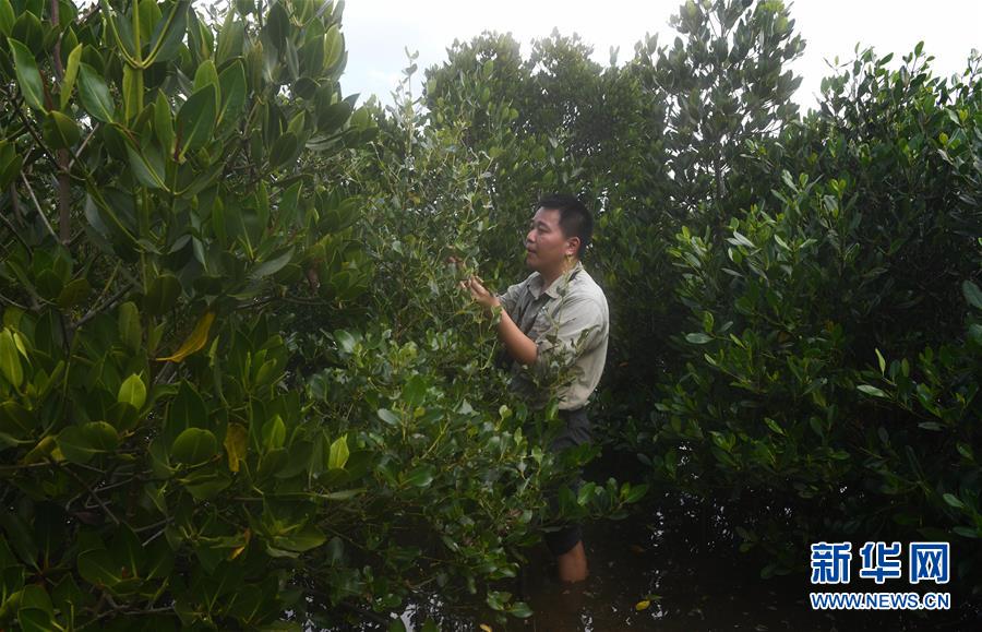海南東寨港國(guó)家級(jí)自然保護(hù)區(qū)林業(yè)工程師馮爾輝在保護(hù)區(qū)內(nèi)的灘涂上查看紅樹林(12月18日攝)。 馮爾輝2009年大學(xué)畢業(yè)后來到保護(hù)區(qū)工作,小時(shí)候他家就住在紅樹林邊上,他從小和紅樹林打交道,喜歡動(dòng)植物和鳥類。外貿(mào)專業(yè)畢業(yè)的他邊工作邊學(xué)習(xí),目前主要從事鳥類監(jiān)測(cè)、紅樹林保育、自然教育等工作。“紅樹林看著我長(zhǎng)大”,馮爾輝說,濕地保護(hù)的工作非常有意義。 新華社記者楊冠宇攝