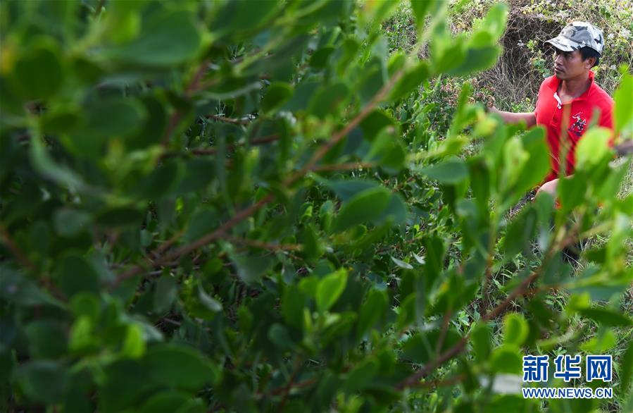 海南清瀾港省級自然保護區(qū)護林員呂詩陽查看保護區(qū)內(nèi)的紅樹林(12月17日攝)。 新華社記者楊冠宇攝