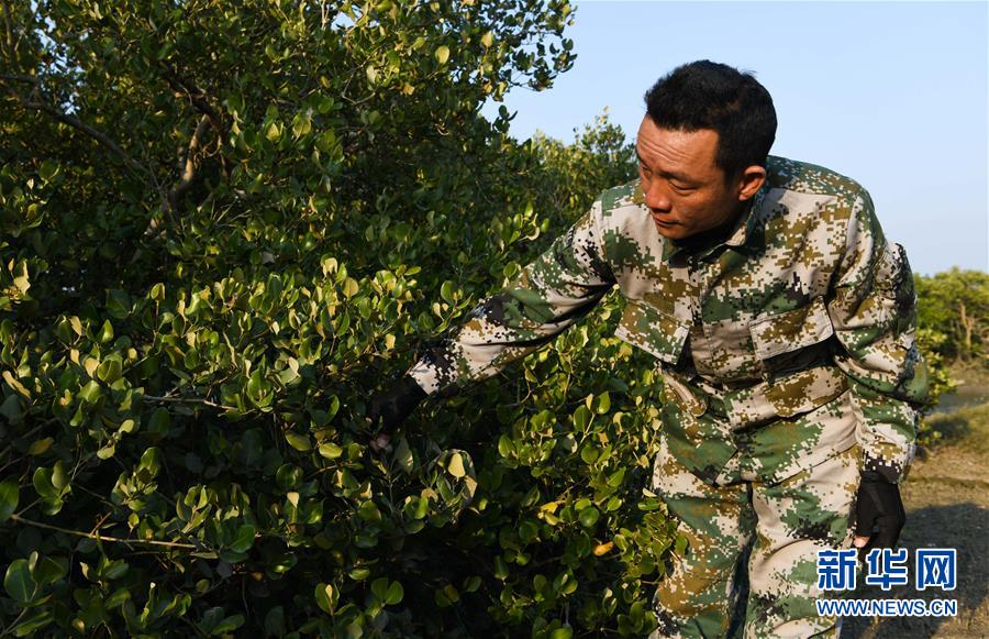 海南儋州新英灣紅樹林市級(jí)自然保護(hù)區(qū)護(hù)林員陳正平查看保護(hù)區(qū)內(nèi)的紅樹林情況(12月9日攝)。陳正平2010年開始在保護(hù)區(qū)工作,他將工作發(fā)展成愛(ài)好,廣泛參加各種培訓(xùn)和業(yè)內(nèi)交流。他在工作中拍到瀕危鳥類白肩雕出現(xiàn)在海南的照片,這刷新了海南省的鳥種記錄。新華社記者楊冠宇攝