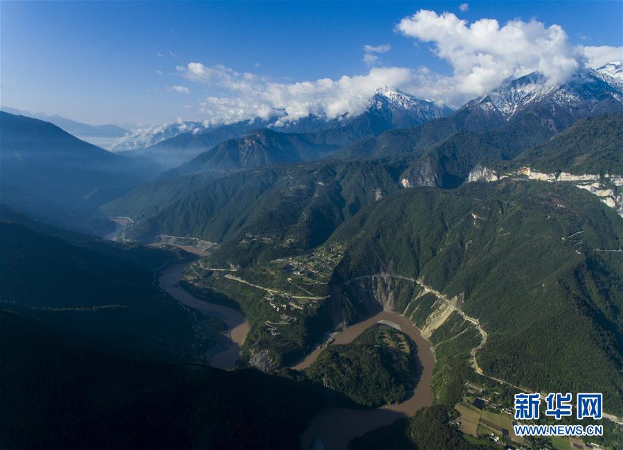 這是4月27日在云南省貢山獨龍族怒族自治縣丙中洛鎮(zhèn)拍攝的“怒江第一灣”(無人機拍攝)。怒江自青藏高原一路奔騰向南流至云南省貢山獨龍族怒族自治縣丙中洛鎮(zhèn),高黎貢山與碧羅雪山夾江而立,江水順山勢急轉(zhuǎn)形成了一個氣勢磅礴的半圓形大灣,被稱為“怒江第一灣”。新華社記者江文耀攝