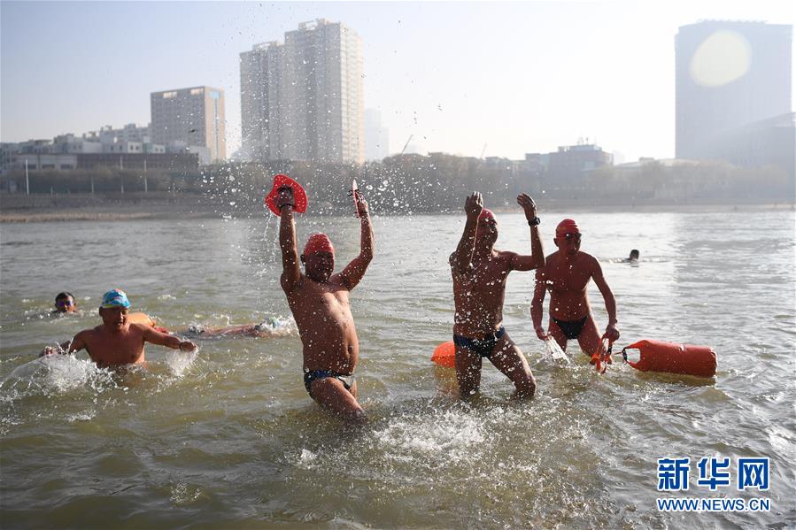 12月18日,冬泳愛好者張敏捷在黃河冬泳。新華社記者馬寧攝