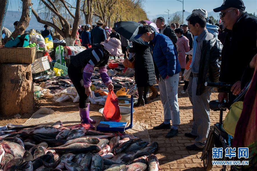 12月25日,人們?cè)谛窃坪系睦虾泳佐~(yú)市選購(gòu)剛捕撈的鮮魚(yú)。新華社記者胡超攝