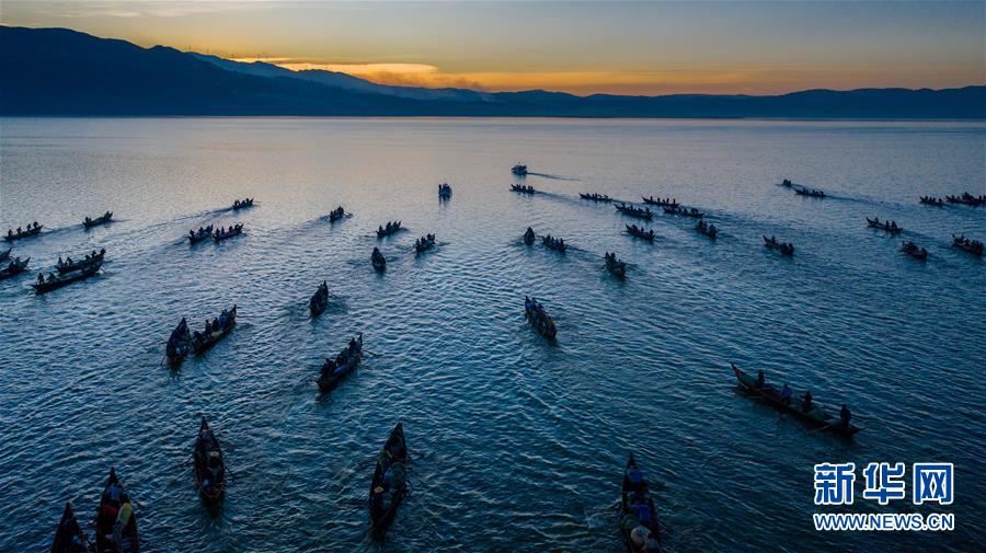 12月25日,漁船駛?cè)胄窃坪o人機(jī)拍攝)。當(dāng)日,位于云南省玉溪市江川區(qū)的星云湖迎來一年一度的開湖捕魚季,600余艘漁船駛?cè)胄窃坪稉?。星云湖是云南省九大高原湖泊之一,本次開湖捕魚時(shí)間將從2019年12月25日持續(xù)至2020年1月23日。新華社記者胡超攝