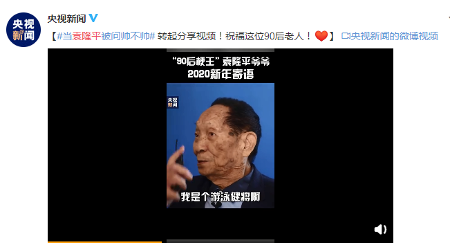 深圳新聞網訊 近日,央視新聞在其官方平臺下曬出一段袁隆平受采訪的視頻。值此2020年即將來臨之際,袁隆平先生在視頻中為年輕人們送來了新年寄語,“首先注意身體,這是基礎,我年輕時候喜歡鍛煉,我是個游泳健將啊,游泳年輕的時候是武漢市第一名啊”,并且在視頻中回答了一個記者的問題,俘獲了無數網友的內心。