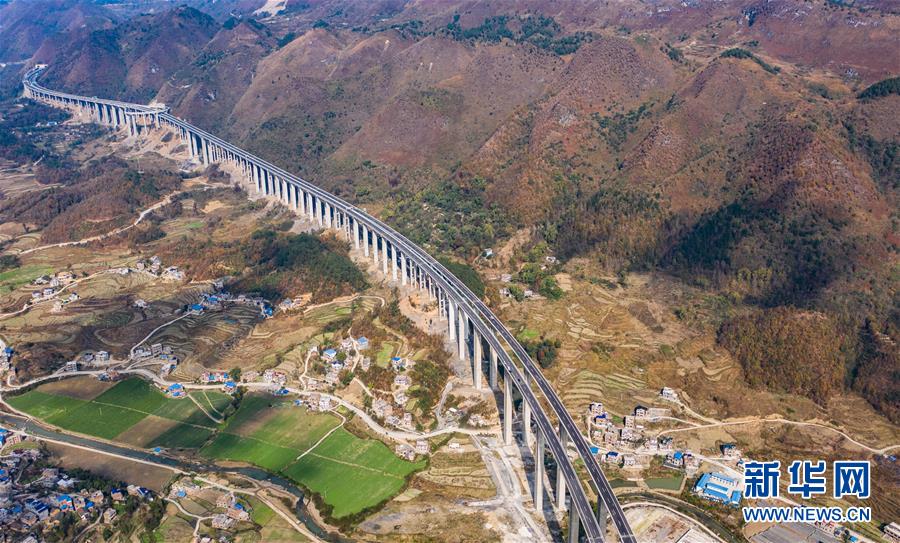 這是中冶集團承建的紫望高速火花特大橋(無人機照片,1月1日攝)。新華社記者陶亮攝