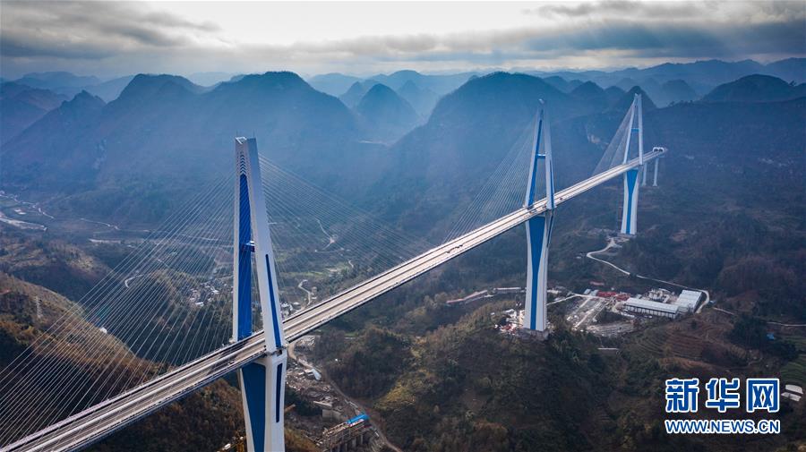 這是貴州公路開(kāi)發(fā)公司承建的平羅高速平塘特大橋(無(wú)人機(jī)照片,2019年12月29日攝)。新華社記者陶亮攝