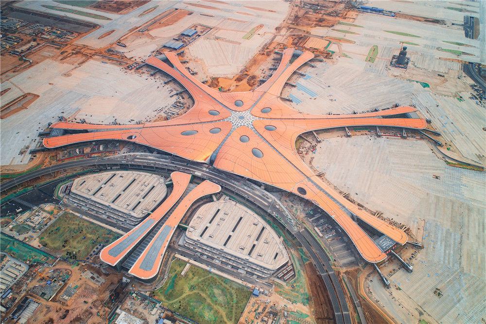 2018年12月26日,航拍北京大興國際機場,形如展翅的鳳凰。大興國際機場由普利策獎建筑學獎獲得者扎哈設計,預計2019年6月30日前全面竣工,2019年9月30日投入運營。張喬/視覺中國