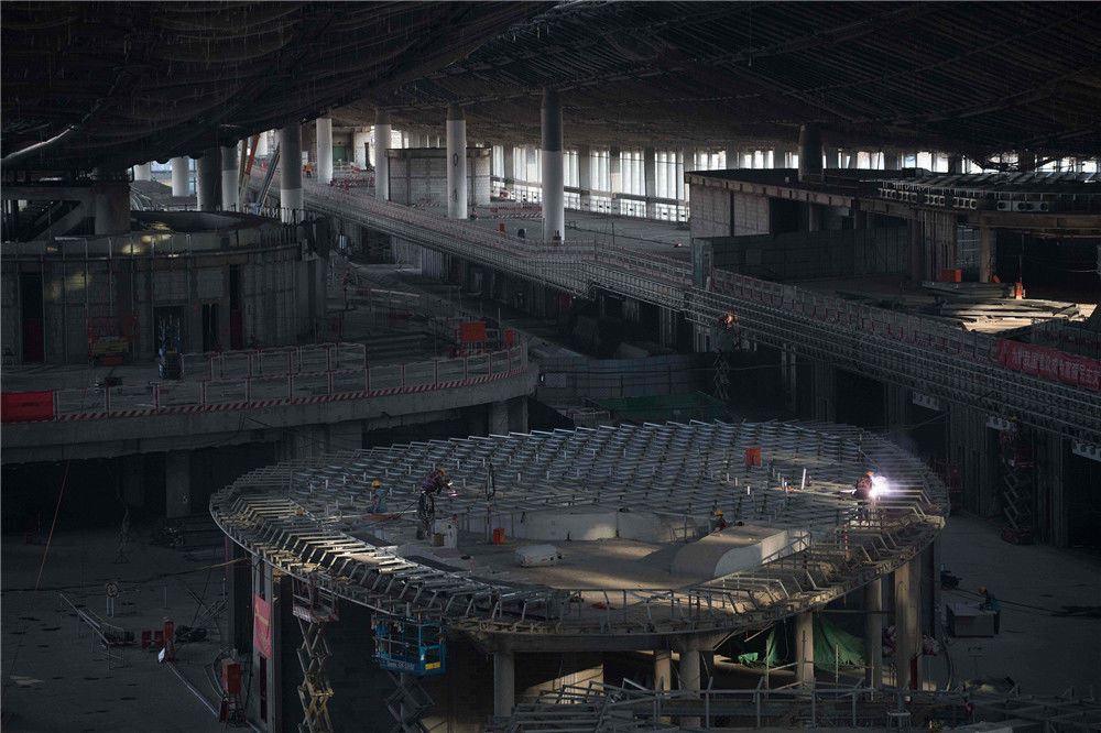 2018年8月30日,北京,攝影師在媒體開放日拍攝到北京大興在建新機場的航站樓內(nèi)部構(gòu)造。該機場預(yù)計將于2019年完工,屆時將成為世界上最大的機場之一。NICOLAS ASFOURI /視覺中國