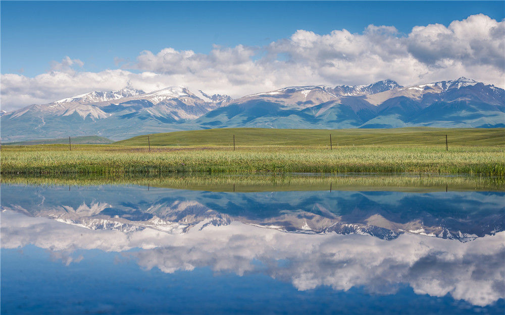 2019年7月11日,新疆巴音郭楞獨庫公路邊的天山倒影。黃光浩/視覺中國